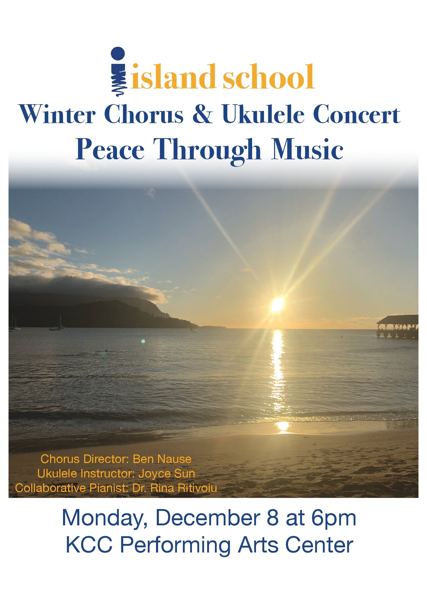 Come out and support the Island School Chorus and Ukulele Ensemble on the island of Kauai for their Winter Concert. Tickets are FREE and ONE night only December 8th at 6pm at the PAC at Kauai Community College.