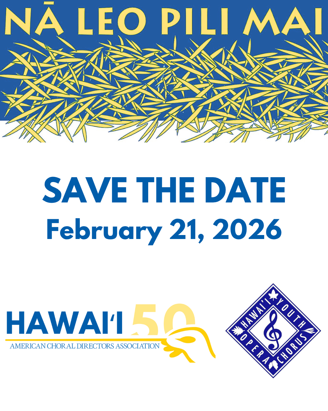 Nā Leo Pili Mai, the 2026 All State Middle School Choral Festival, will take place on February 21st, 2026, at the historic Kawaiahaʻo Church!